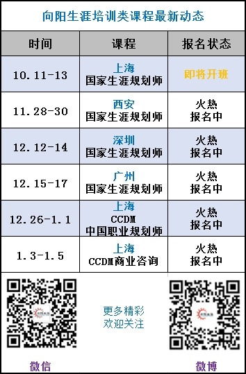 伴隨著習(xí)習(xí)的秋風(fēng),第39期CCDM高級(jí)職業(yè)規(guī)劃師及第17期商業(yè)咨詢(xún)班的培訓(xùn)課程正式落幕。來(lái)自全國(guó)各地的同學(xué)們,懷著助人的愿景,我們聚集到了美麗的華僑城;又懷著感恩的心態(tài),我們揣著滿(mǎn)滿(mǎn)的知識(shí)和技能踏上歸途。我們以豐碩的收獲結(jié)束了這十天九夜的培訓(xùn),更要以一生的力量去傳播我們所學(xué)到的--職業(yè)規(guī)劃的正能量。